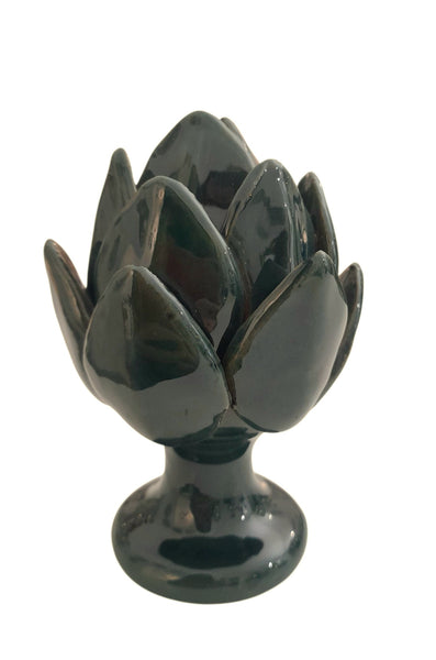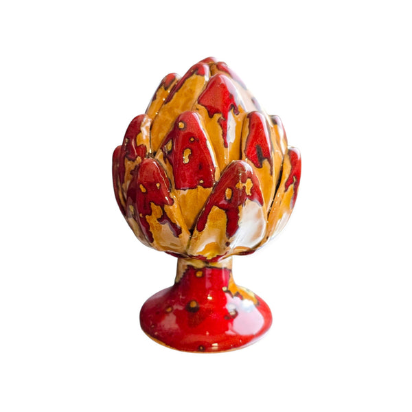 Carciofo siciliano in ceramica siciliana realizzato a mano e dipinto a mano per Maestranze Siciliane. Rappresenta il florido fiore mediterraneo che si sviluppa in primavera. Già usato per scopi alimentari fin dagli antichi Egizi, fu importato in Sicilia dagli Spagnoli.