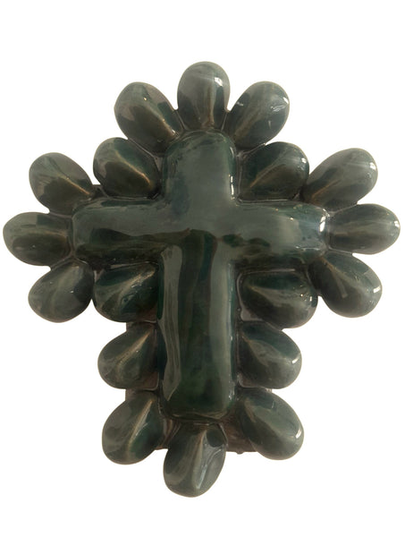 La Croce ex voto devozionale siciliana in ceramica è un oggetto votivo utilizzato per esprimere gratitudine verso una divinità in riconoscimento di una grazia ricevuta. Realizzata artigianalmente, questa croce può essere appesa al muro, trasformandosi in un elemento decorativo carico di valore simbolico e spirituale. Perfetta come regalo o offerta devozionale, unisce tradizione religiosa e design artistico tipico della cultura siciliana.