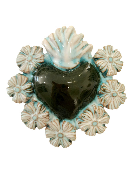 Cuore Sacro in ceramica conosciuto fin dall'antichità col nome di Ex Voto. E' un simbolo universale e antico presente in numerose tradizioni e culture, spesso con valore spirituale. Il cuore è inteso come fonte d'amore, saggezza e forza interiore.