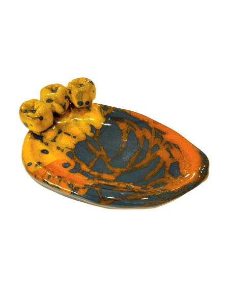 Questa pala di fico d'india in ceramica è un'opera d'arte unica, creata e smaltata a mano con l'applicazione di 3 frutti sul bordo. Grazie alla sua particolare tecnica di smaltatura ad alte temperature, il suo colore è vibrante e duraturo. Utilizzala come svuota tasche o elemento decorativo per dare un tocco di stile al tuo spazio.