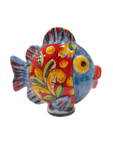 Pesce in ceramica di Caltagirone, da parete, interamente realizzato e dipinto a mano. I pesci presentano varie misure. Pesce da appendere a parete grazie ad un foro.