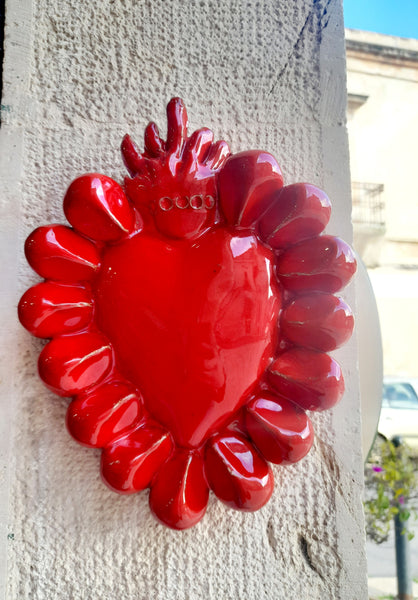 Cuore Sacro in ceramica conosciuto fin dall'antichità col nome di Ex Voto. E' un simbolo universale e antico presente in numerose tradizioni e culture, spesso con valore spirituale. Il cuore è inteso come fonte d'amore, saggezza e forza interiore.