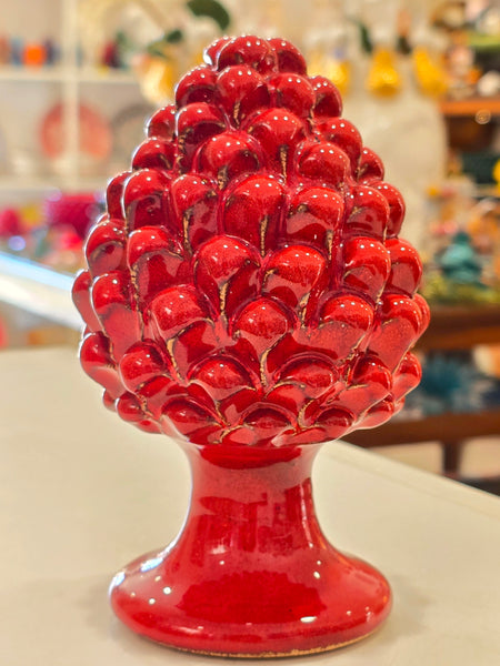 Questa pigna artigianale in ceramica di Caltagirone è realizzata interamente a mano al tornio e decorata con cura manuale, garantendo l’unicità di ogni pezzo. Con un’altezza di 15 cm, rappresenta un’antica tradizione siciliana, simbolo di buon augurio e prosperità. Perfetta per chi apprezza l’eccellenza dell’artigianato e desidera un elemento decorativo autentico e distintivo. Disponibile in vari colori, unisce bellezza e significato culturale in un oggetto senza tempo.