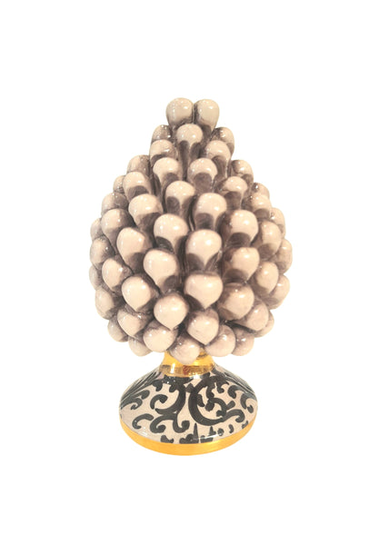 Pigna artigianale in bianco antico con base decorata e oro, un pezzo unico che unisce tradizione e raffinatezza. Perfetta per ambienti classici e moderni, l’oro alla base valorizza ogni spazio con eleganza e un tocco di preziosità.