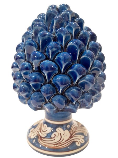 Pigna in ceramica di Caltagirone colore blu h cm 20 interamente realizzata e dipinta a mano con decoro Onda Barocca nel piede.