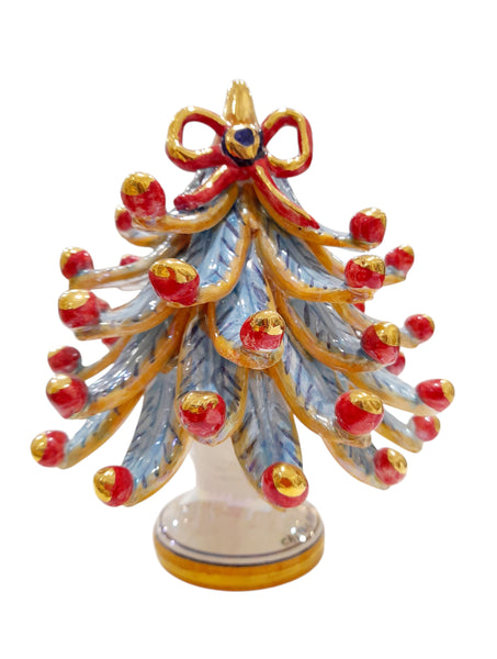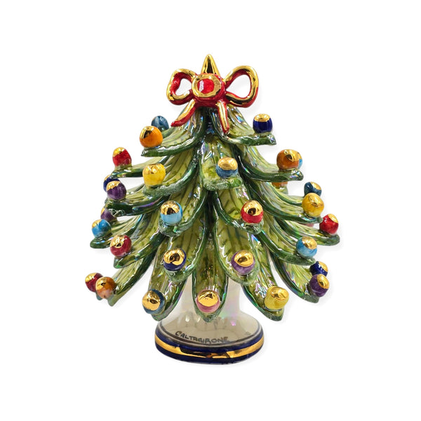 Albero di Natale artigianale in ceramica di Caltagirone interamente realizzato al tornio e dipinto a mano con tecnica terzo fuoco che prevede il passaggio con smalto oro 24k e madreperla.