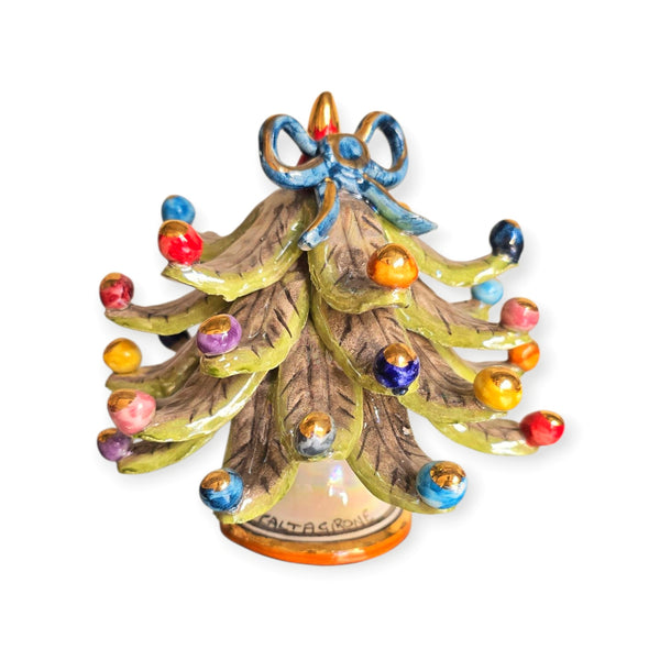 Albero di Natale artigianale in ceramica di Caltagirone interamente realizzato al tornio e dipinto a mano con tecnica terzo fuoco che prevede il passaggio con smalto oro 24k e madreperla.