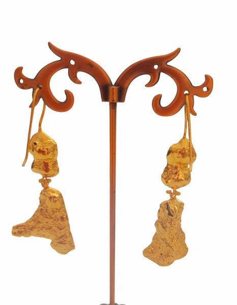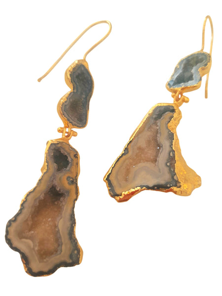 Questi orecchini rappresentano un'incantevole fusione di artigianalità e design sofisticato. Realizzati in ottone colato, sono impreziositi da geode di agata con tonalità di verde e donano profondità e luminosità. Il loro stile unico e raffinato li rende perfetti per chi desidera un accessorio distintivo e di grande effetto, capace di valorizzare l'outfit con un'eleganza fuori dal comune.