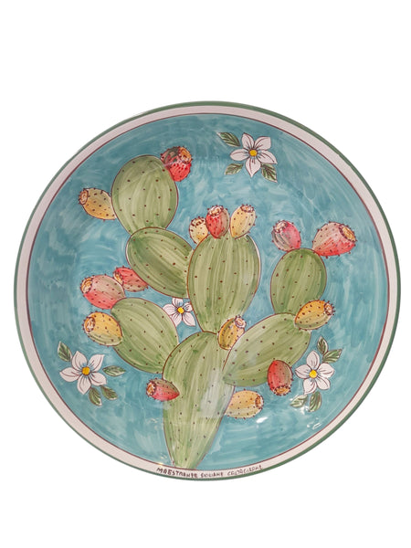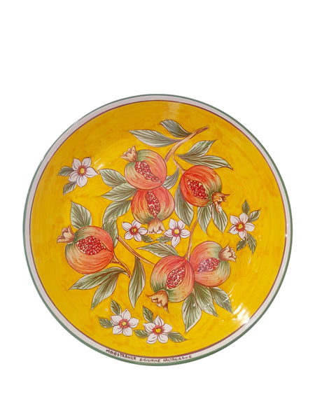 Piatto fangotto siciliano in ceramica di Caltagirone interamente realizzato e dipinto a mano, vari decori.