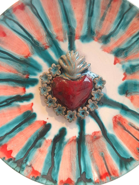 Questo piatto rotondo con cuore sacro in ceramica è realizzato completamente a mano, esprimendo l’autenticità della tradizione siciliana. Al centro, il cuore sacro simboleggia amore e protezione, conferendo all’oggetto un valore emotivo oltre che estetico. Ideale per arricchire con eleganza qualsiasi ambiente domestico o per offrire un regalo dal significato profondo e radicato nella cultura locale.