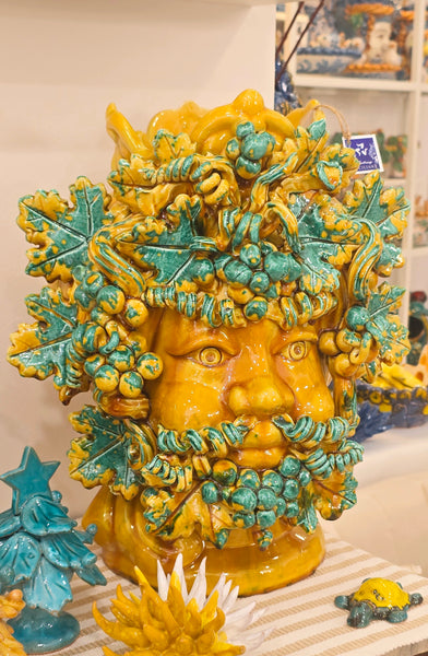 La testa di Bacco rappresenta il dio del vino nella mitologia classica, simbolo di libertà e piacere. Questo pezzo unico è interamente forgiato e dipinto a mano con la raffinata tecnica a terzo fuoco, realizzato da maestri artigiani. Con un’altezza di 40 cm e una larghezza di 30 cm, si distingue per la qualità artigianale e il valore artistico, perfetto per chi cerca un oggetto di grande pregio e autenticità.