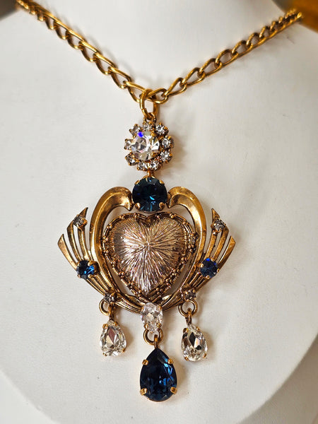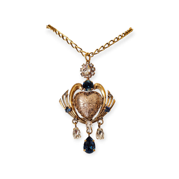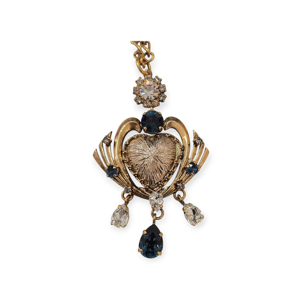Collana cuore sacro ex voto con cristalli blue montana e gocce pendenti