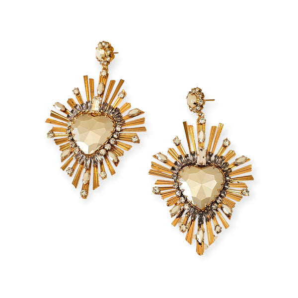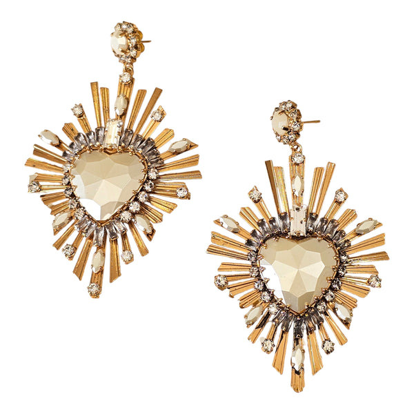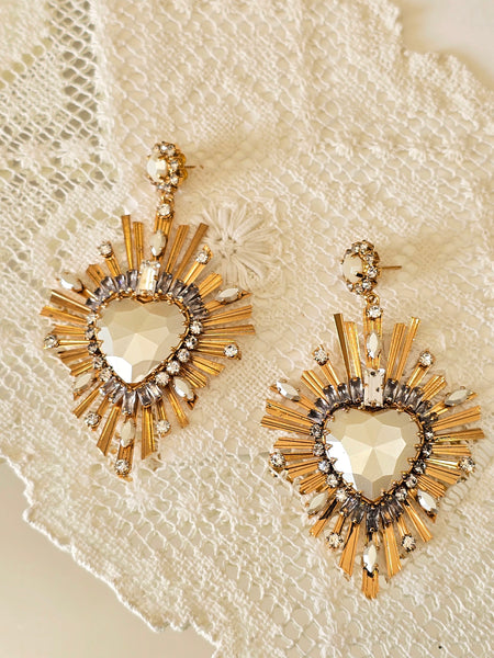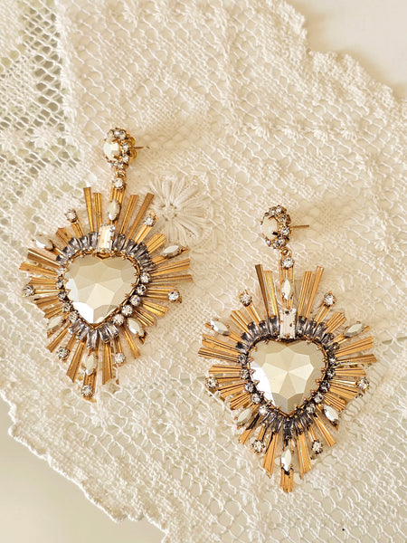 Grandi orecchini cuore sacro ex voto con raggi dorati